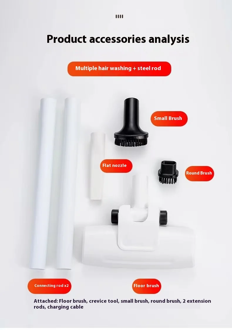 1. Powerful Suction: Our handheld wireless vacuum cleaner boasts a 8500pa suction power, capable of picking up the tiniest dust and dirt particles, ensuring a thorough clean on both carpets and hard floors quickly and efficiently.